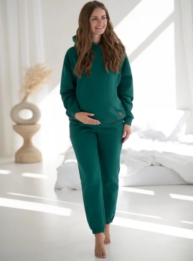 Grube dresowe spodnie ciążowe Motherhood butelkowa zieleń