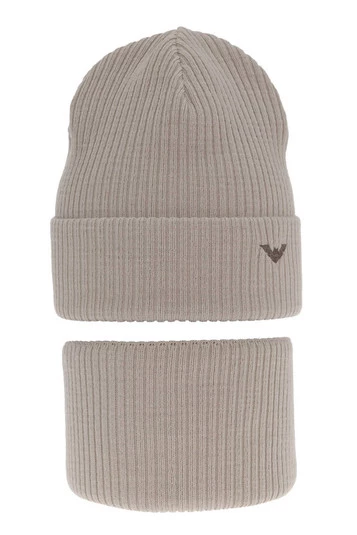 Czapka i komin dla chłopca zimowy komplet, beżowy Romeo