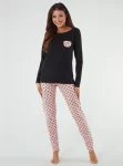Buscato piżama damska długi rękaw. długie spodnie czarny/druk
