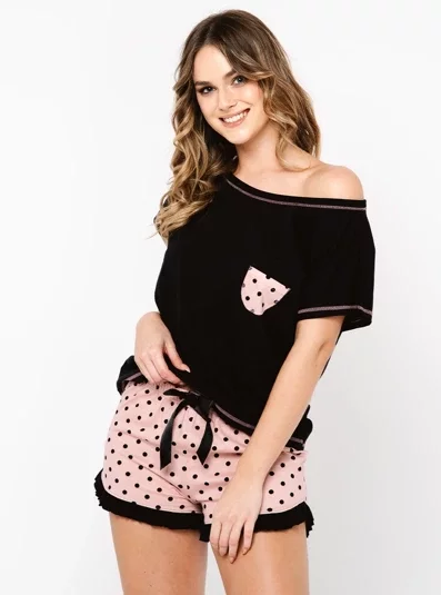 Buscato piżama damska długi rękaw. długie spodnie czarny/druk