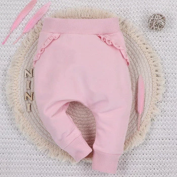 Dziewczęce spodnie dresowe z falbankami z bawełny organicznej - pudrowy róż