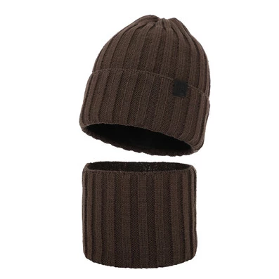 Czapka i komin dla chłopca jesienny, wiosenny komplet, khaki, 100% wełniany merino Richi