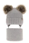 Czapka i komin dla dziewczynki zimowy komplet, szary, wiązany, 100% wełniany merino, z dwoma pomponami Silvia