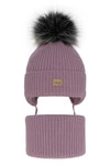 Czapka i komin dla dziewczynki zimowy komplet, fioletowy, z pomponem, wiązany Dilajla