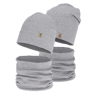 Czapka i komin dla chłopca zimowy komplet, camel, z wełną merino, podszyty polarem Banasko