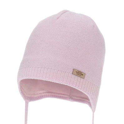 Czapka i komin podszyty bawełną dla dziewczynki zimowy komplet, jasnoróżowy, z wełną merino, Odette