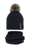 Czapka i komin dla chłopca zimowy komplet, niebieski, z pomponem, podszyty polarem Kalen