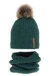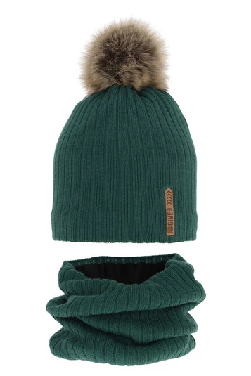 Czapka i komin dla chłopca zimowy komplet, zielony, z pomponem, podszyty polarem Kalen