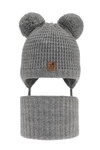 Czapka i komin dla chłopca zimowy komplet, szary, z dwoma pomponami, wiązany Krispi