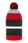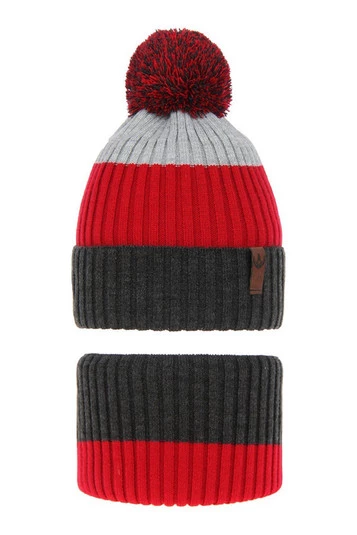 Czapka i komin dla chłopca zimowy komplet, bordowy, z wełną merino, podszyty polarem Banasko