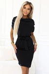 PATRICIA elegancka sukienka z dłuższym tyłem i koronkowym dekoltem - BRUDNY RÓŻ