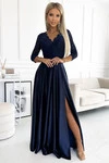 512-1 JULIET elegancka długa satynowa suknia z dekoltem - ZIELEŃ BUTELKOWA