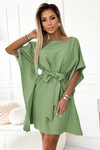 NINA sukienka z kopertowym dekoltem, rękawkiem i paskiem - BŁĘKITNA