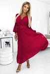 LISA Plisowana sukienka midi z dekoltem i falbankami - kwiat brzoskwini na białym tle