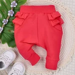 Spodnie dresowe Łąka z bawełny organicznej dla dziewczynki - czerwone