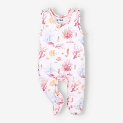 Turkusowy pajac niemowlęcy Summer Robots z bawełny organicznej dla chłopca