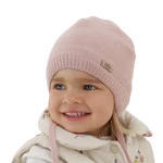 Czapka i komin podszyty bawełną dla dziewczynki zimowy komplet, jasnoróżowy, z wełną merino, Odette