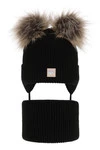 Czapka i komin dla dziewczynki zimowy komplet, czarny, z dwoma pomponami, wiązany Kiara
