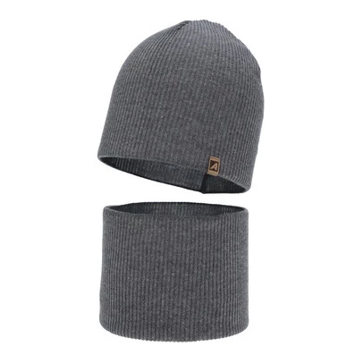 Czapka i komin podszyty bawełną dla chłopca zimowy komplet, szary, z wełną merino, Colton