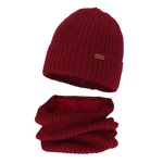 Czapka i komin dla chłopca zimowy komplet, bordowy, z wełną merino, podszyty polarem Palermo