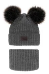 Czapka i komin dla chłopca zimowy komplet, szary, z dwoma pomponami Tokio