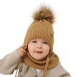 Czapka i komin dla chłopca zimowy komplet, camel, wiązany, z pomponem Bergo