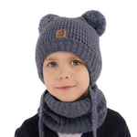 Czapka i komin podszyty bawełną dla chłopca zimowy komplet, szary, z wełną merino, Colton