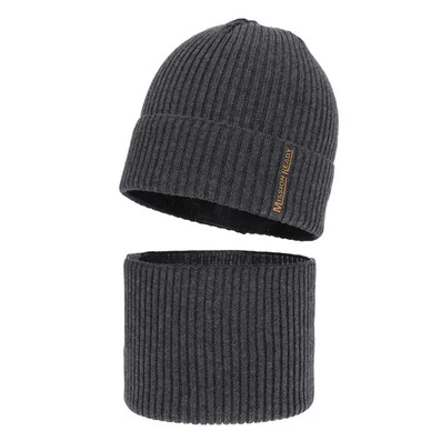 Czapka i komin dla chłopca, zimowy komplet, 100% wełniany merino, z podszyciem z wełny merino, szary Harbin