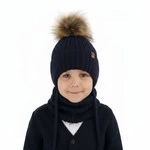 Czapka i komin dla chłopca zimowy komplet, granatowy, 100% wełniany merino, z pomponem Juno