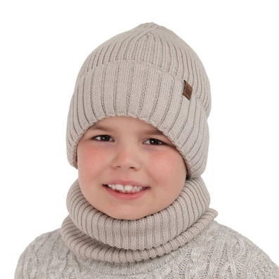Czapka i komin dla chłopca zimowy komplet, szary, wiązany, 100% wełniany merino Konor
