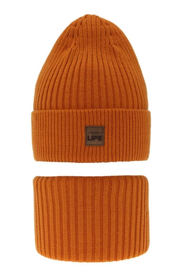 Czapka i komin dla chłopca zimowy komplet, pomarańczowy Basilio