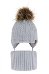 Czapka i komin dla chłopca zimowy komplet, szary, z pomponem Karmel