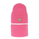 Czapka i komin dla dziewczynki zimowy komplet, różowy, z dwoma pomponami, wiązany Bettina