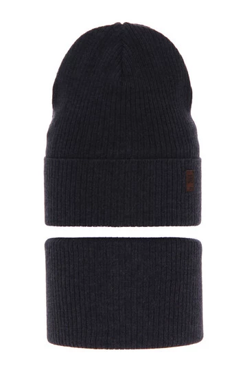 Czapka i komin podszyty bawełną dla chłopca zimowy komplet, szary, z wełną merino, Colton