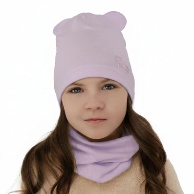 Czapka i komin dla dziewczynki jesienny, wiosenny komplet, fioletowy, bawełniany Cyntia