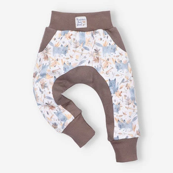 Spodnie Niemowlęce Skarby Jesieni Z Bawełny Organicznej Kolorowy Nadruk Brązowy