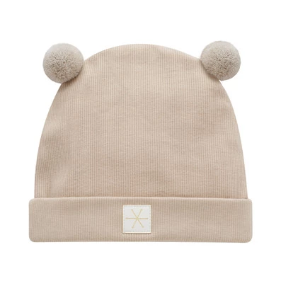 Czapka Niemowlęca Winter Beżowy z Dwoma Pomponami