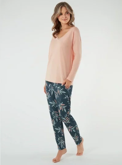 Betty piżama damska 3/4 rękaw. długie spodnie cappuccino/druk cappuccino