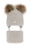 Czapka i komin dla dziewczynki zimowy komplet, szary, z dwoma pomponami, wiązany Kiara
