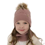 Czapka i komin dla dziewczynki zimowy komplet, beżowy, z dwoma pomponami, wiązany Telisa
