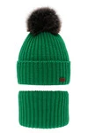 Czapka i komin dla chłopca zimowy komplet, niebieski, z dwoma pomponami, wiązany Randel