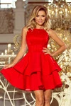 205-1 LAURA podwójnie rozkloszowana sukienka z koronkową górą - CZERWONA