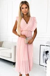 GIORGIA Plisowana sukienka z falbankami, dekoltem i złotym łańcuszkiem - BRZOSKWINIOWA