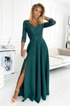 309-5 AMBER elegancka koronkowa długa suknia z dekoltem - ZIELEŃ BUTELKOWA