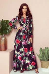 Sukienka MAXI wiązana na szyi z rozcięciem - kolorowe róże i niebieskie ptaszki