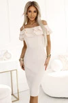 MATILDE Kobieca sukienka z dekoltem i krótkim rękawkiem - beżowo-błękitne kwiaty