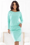 Dresowa sukienka z długim rękawem i kieszeniami - wygodny fason z dekoltem na plecach - MIĘTA