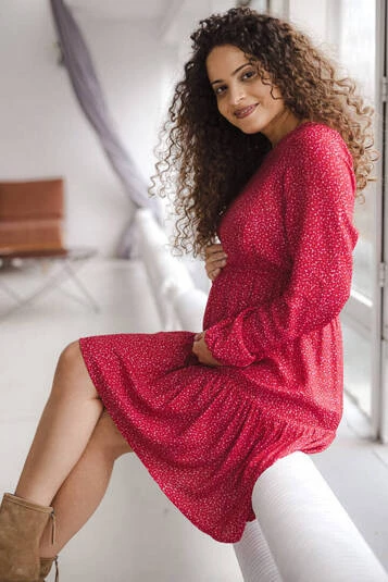 Sukienka ciążowa i do karmienia Lovely Dress czerwono-malinowa w print długi rękaw