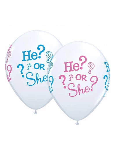 Balon "He or She?" - biały z napisami