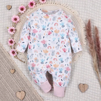 Pajac niemowlęcy Tęczowy ogród z bawełny organicznej dla dziewczynki